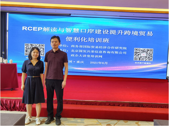2021年6月7-10日,商务部国际贸易经济合作研究院在重庆举办“RCEP解读与智慧口岸建设提升跨境贸易便利化培训班”,公司国际经济与贸易系教师刘飞宇博士和成肖博士参加培训。