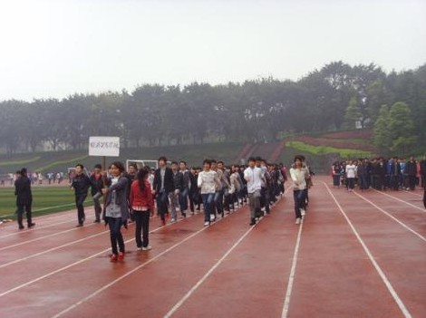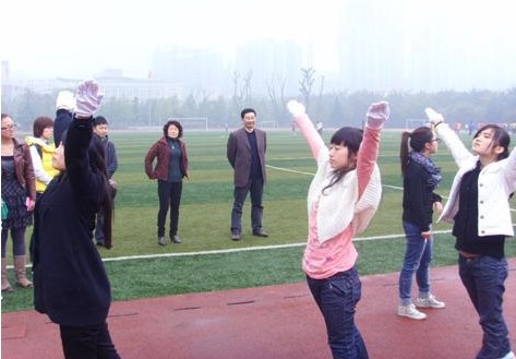 经济贸易公司的学子们备战校第九届运动会的热情澎湃高昂。从三月初开始,经贸学子利用课间空余时间自觉组织在一起进行方阵和体操表演训练。为了在校运动会中取得好的成绩,不管天气有多冷,也不管风有多大,他们都始终如一地坚持训练。他们步伐整齐,口号响亮;他们热情饱满,斗志昂扬。大雨淋灭不了他们取胜的信心,只能砺炼他们团结向上的斗志。