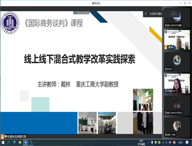 虚拟教研室负责人戴林副教授介绍了公司“国际商务谈判”课程线上线下混合建设成果,蒋兴红、邹思晓等老师分别结合各自的课程,分享了利用网络教学平台、数字技术与工具等进行教学与改革的实践与经验。张正荣老师在发言中从教育发展的历史阶段着眼,对我们这一代老师在教学经历上的背景与挑战,做了非常精辟的分析。他提出,随着教育数字化和智能化的发展,教学过程正在出现产品化、个性化和人格化转变的趋势,这就要求我们这些老师要转变过去工业化阶段背景下公司产品工具性的思维方式和特征,而要适应新的形势的要求,积极谋求改革与进步。