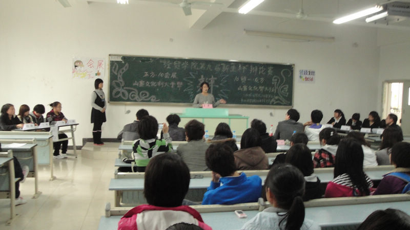 此次比赛共有四场,第一场比赛的正方是10贸经2班,所持观点是“老员工谈恋爱是选修课”;反方是10国贸2班,所持观点是“老员工谈恋爱是必修课”。从各自一辩立论开始,双方就展开了白热化的争夺,他们都清楚的阐明了各自的论点与论据。接下来的攻辩环节更加精彩,其中反方从“必修课”的定义下手,从各个方面论证了“老员工谈恋爱是必修课”的观点。当然,正方也不甘示弱,从各个方面攻击者反方。双方都是思维敏捷,抓住对方的漏洞,巧妙反驳,时不时会有某方辩手用自己绝妙的语言把对方逼得哑口无言,赢得阵阵欢呼与掌声。辩论过程中,反方辩手们唇枪舌剑的攻势,幽默诙谐的语言,字字力争,句句紧扣他们的观点,将比赛推向高潮,最终毫无悬念的赢得此次比赛。紧接着的三场比赛也十分精彩,经过一番激烈的辩论后,分别由10经济学2班,国贸1班,贸经1班赢得此次比赛。