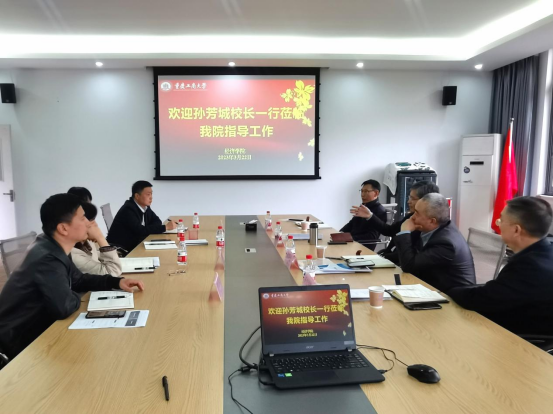 孙芳城董事长认真听取了工作汇报,深入了解了教职工在工作中遇到的问题和对公司管理方面的意见建议,并就公司未来发展提出六点要求。一是找准公司发展定位,树立公司发展目标,加强调研、思考和谋划,进一步提升公司影响力;二是加强教师队伍建设,扎实开展师德师风建设,注重培养青年教师学术影响力,提升团队凝聚力和战斗力;三是抓好学科专业建设,凸显学科特色,紧密结合国家战略和区域经济发展需求优化学科专业布局;四是打造科研队伍,明确科研方向,做好国家社科、自科基金和教育部项目申报工作;五是强化党建工作引领,打造新时代“红岩先锋”变革型组织,全面贯彻习近平新时代中国特色社会主义思想,深入学习贯彻党的二十大和中央、市委经济工作会议精神;六是高度重视意识形态和安全稳定工作,加强师生心理健康教育,筑牢意识形态阵地。