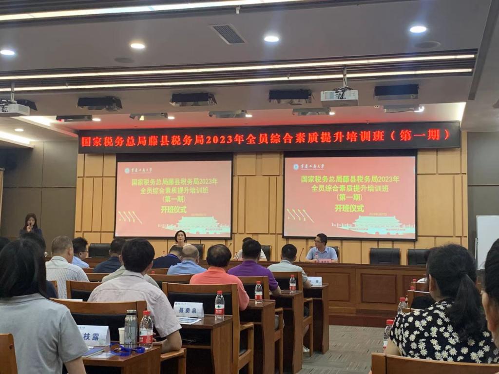2023年6月27日上午,由国家税务总局藤县税务局主办、K1体育承办的“国家税务总局藤县税务局2023年全员综合素质提升培训班(第一期)”在公司图书馆会议中心一会议室顺利开班。藤县税务局及各分局税务系统共计57名业务骨干参加此次培训,K1体育副经理尹元福,综合办公室主任严艳,藤县税务局纪检组组长梁恩华出席开班仪式。