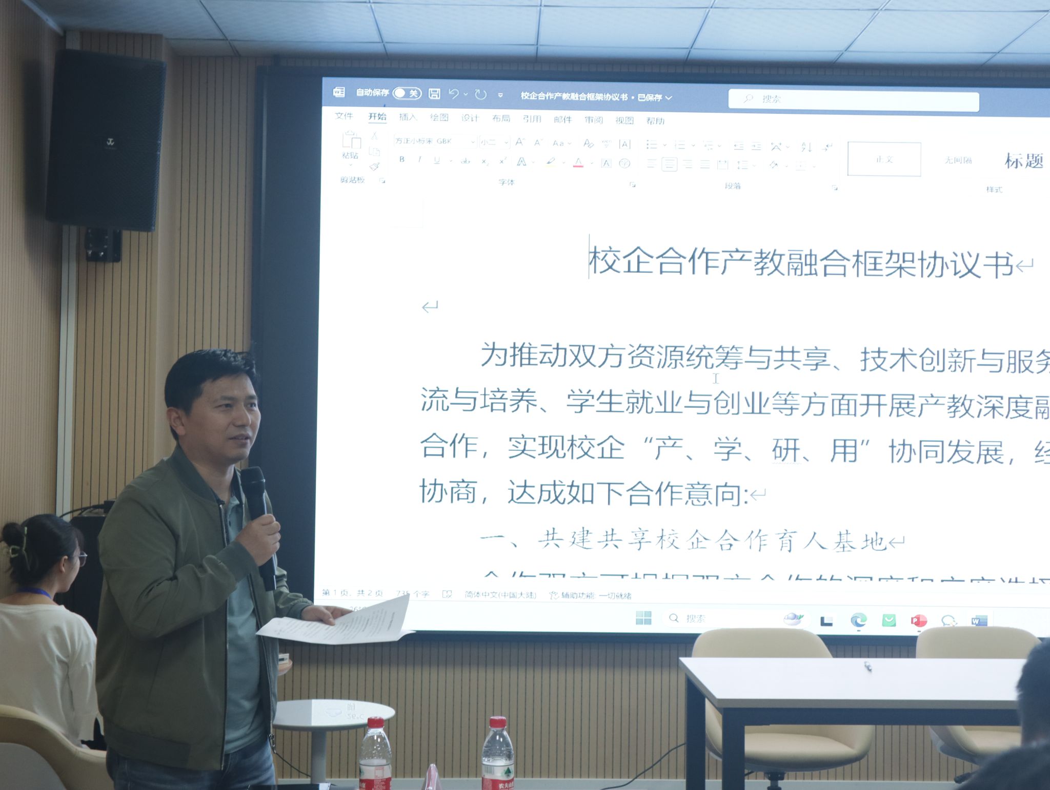 尹元福副经理解读了产教融合框架协议,明确双方的合作意向,来自企业的代表也纷纷各抒己见,表达了对深度融入区域经济社会发展大局、提高产教融合、校企合作精准度的强烈认同,提出要积极主动解决好产教融合实践中存在的校企合作缺乏有效载体、融合路径不够顺畅等问题,全方位增强校企合作产教深度融合,促进校企产多方共赢。与会人员围绕“如何深化校企合作,实现产教融合”的主题展开了热烈的讨论。大家一致认为,深化校企合作需要双方共同努力,建立起长效机制,加强信息共享和资源互补。同时,还需要注重实践教学和创新创业教育的融合,让员工能够在实践中学习、在创新中成长。