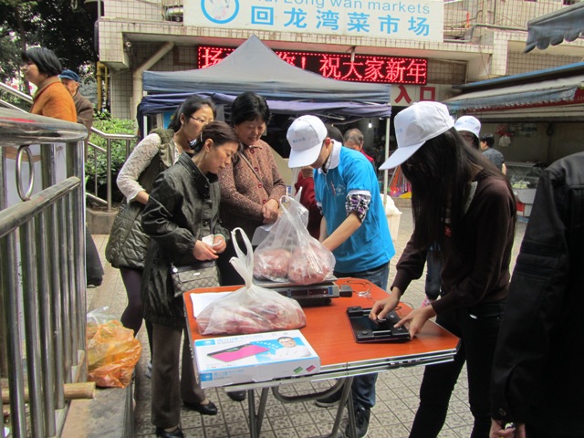 同学们到达农贸市场后,分成两批,一批负责宣传“3•15”打假维权相关知识,对来往的消费者进行认真、详细的解说。另一批志愿者在农贸市场门口摆上公平秤,让来往的消费者去真正感受一下“公平”,一是为了加强消费者维权的意识,避免侵权行为的发生,二是为了让消费者放心,让消费者生活在诚信与健康之中。党服站员主要负责发放宣传单,并向消费者宣传维权知识,呼吁消费者懂得用正确的手段维护自己的权利。