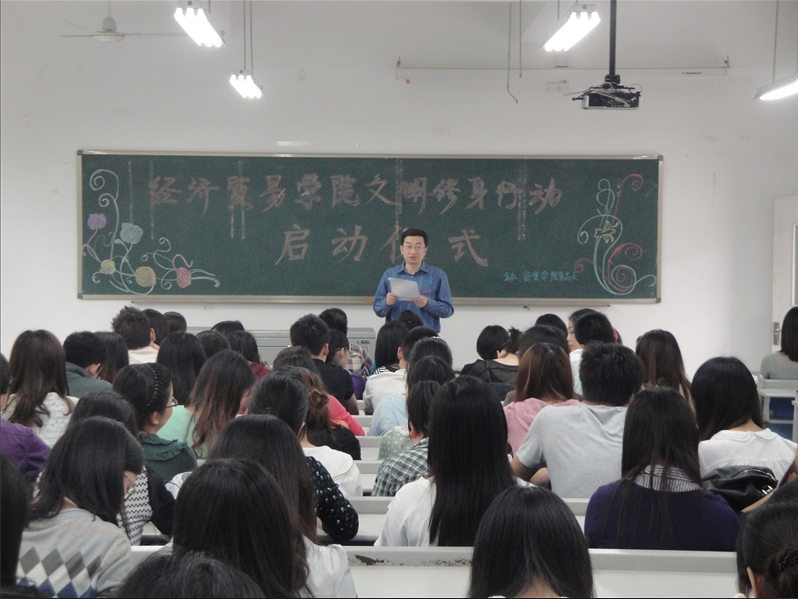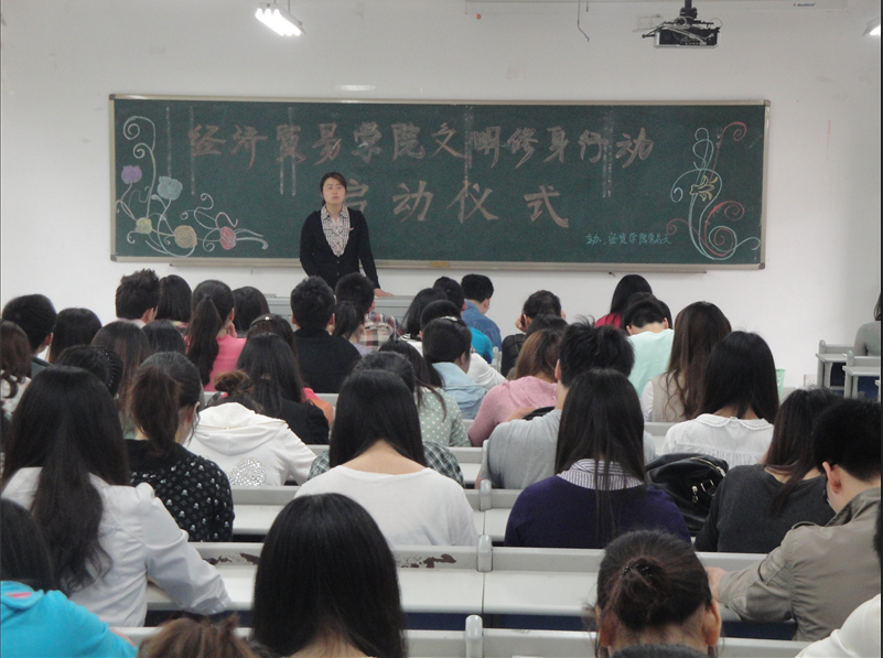 5月2日中午1点,由经贸公司党总支主办的“经济贸易公司文明修身行动启动仪式”在田家炳书院410教室成功举办。到场的嘉宾有经贸公司党总支张筱璐书记、李华平副书记,经贸公司学团办杨华俊主任,团委书记林新竹老师,经贸公司辅导员黄玲老师、喻智成老师,以及经贸公司08级、09级、10级各班班委、北六和北二十一楼栋党服成员和各支部同学。