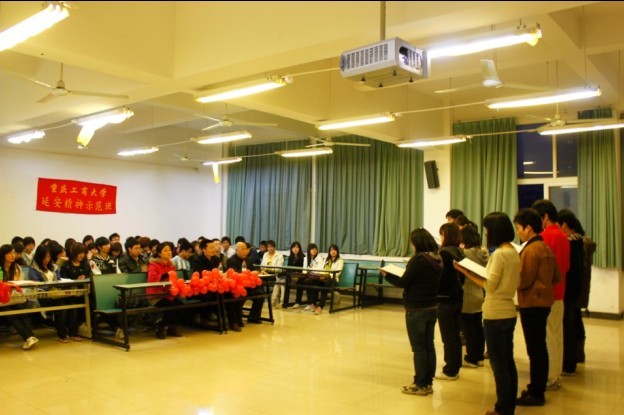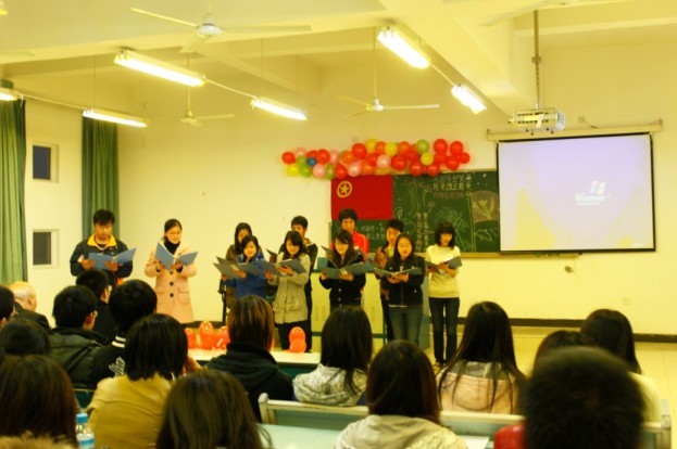 为了庆祝建党90周年,经济贸易公司“弘扬延安精神,重温二万五千里长征”系列活动之“风雨兼程90年”延安精神文艺汇报演出于3月29日晚7点兰花湖20414教室正式开展。本次活动由09延安精神班国贸1班和10延安精神班经济学2班共同举办。关心下一代委员会王应泉老师,学团办主任杨华俊老师,团总支书记林新竹老师出席了了本次活动。