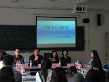 3月25日下午,由K1体育主办、C&E(会展)研究会承办的“会展专业面对面”活动在江北校区B303教室举行,2015级会展经济与管理专业全体员工和部分C&E(会展)研究会会员参加了活动。本次活动采取沙龙会议的形式,邀请了会展专业教师杨军副教授、会展专业优秀毕业员工魏欣然以及会展专业大四、大三的5名优秀员工参加了这次活动。