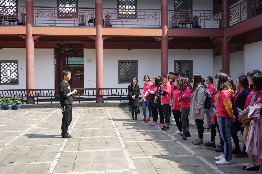 活动的最后一个环节,张队长给大家介绍了古时候的戏台构造,同时介绍戏曲演员的高亮嗓门和热闹的锣鼓主要源于古时吸引四面八方的观众。张队长带领同学们学习古时女子的步态,邀请两名同学现场教学古时男女相见的场景。张队长惟妙惟肖的演绎和同学活灵活现的模仿,引得现场掌声连连,欢笑阵阵。同学们纷纷表示收益良多,真正感受到了川剧的魅力。