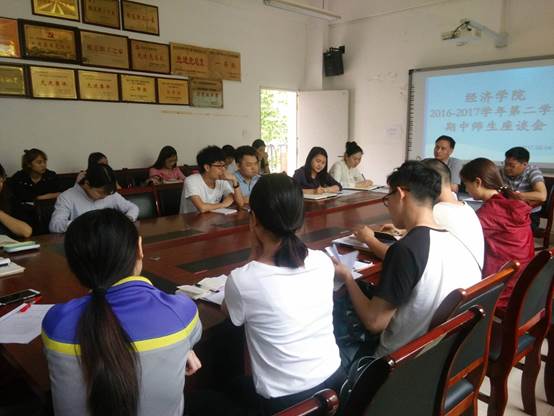随后,各班级信息员依次发言,场面热闹。同学们踊跃发言,对公共基础课、专业课的任课老师的教学效果反映热烈。部分专业课讲课生动、师生互动好、案例充分、教学方式新颖、内容时代性强、理论与实践结合强,如《流通经济学》、《金融计量分析》、《零售学》、《电子商务与网络营销》等。当然,不足方面,部分课程存在授课方式枯燥、拖堂、“翻转课堂”效果较差、师生互动偏少、语音语速偏快、课堂展示环节过多等问题。在教学设备方面反映,信息员则反映7教部分教室投影或话筒效果不佳,实验机房电脑设备运行速度慢或教学软件仍待升级换代。另外,教材方面,个别自编教材存在低级错误,校对质量待提高。