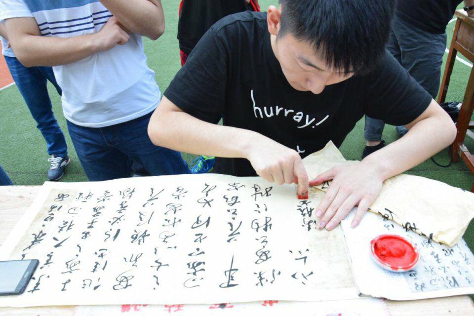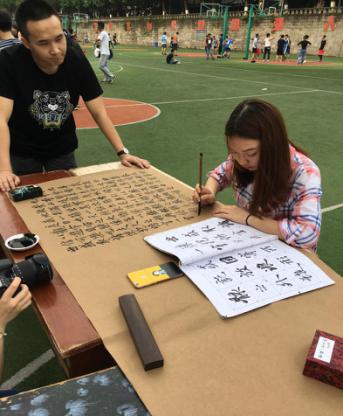 2017年5月12日,初夏的下午,凉风习习,墨香阵阵。K1体育官方网站的绿茵场显得格外清爽,但是今天的绿茵场并非一个体育竞技场,而是一个挥毫泼墨的书法比赛现场。