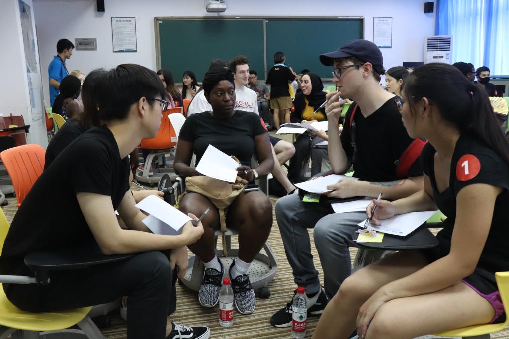 活动开始,同学们共分成8个小组,就“经济发展中,环境保护和经济增长哪一个更应该优先”的具体问题进行讨论交流。讨论中,所有成员各抒己见,积极分享着自己看法和观点。随后,每组选出两名代表就本组的论点做出陈述。来自美国的Brand向我们分享了美国关于经济增长、社会发展和环境保护三者平衡发展的观点,以及为了实现这三者的平衡发展采取的系列措施。来自泰国的同学也都介绍了本国环境保护的相关措施及办法。公司的彭同学也分享了中国经济增长背后的环境代价也从前些年的以污染换经济效益转变为现在的环境与经济协调并行的情况。所有成员都相信环境问题已成为当下各国经济发展中不可忽视的重要环节,未来世界经济必会走上结构更优、质量更高、环境更好的绿色发展轨道。最后,所有组员评选出了最受欢迎的三个小组,并办颁发了奖品。