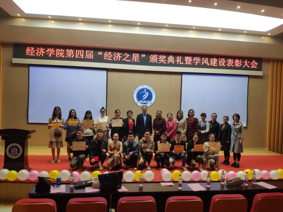 最后,大会对“‘五个一’活动之——读国学经典、立诚信之志”读书、书法比赛21位获奖同学颁奖。此次表彰大会不仅展现了经济学子青春风采,更激励了经济学子奋勇向前,拼搏进取,以青春的名义再接再厉,再创辉煌。