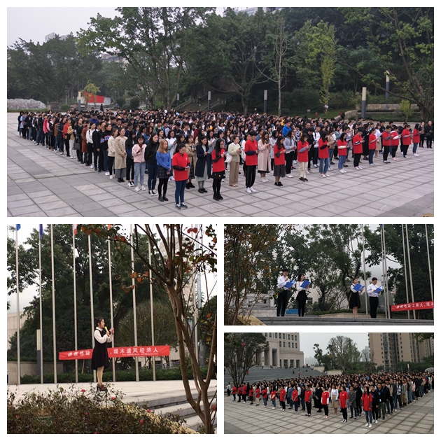 升旗仪式上,14位护旗手饱含着对祖国的崇高敬意,国旗班的成员迈着铿锵的步伐来到升旗台下,全场一片肃静。在激昂的《义勇军进行曲》中,升旗手振臂一挥,鲜艳的五星红旗迎风飘扬、冉冉升起,飘扬在K1体育官方网站的上空。国旗升起后,四位领诵同学朝气蓬勃、激情澎拜地朗诵习近平总书记关于诚信的重要讲话。最后,全体同学铿锵有力地齐声朗诵《老员工诚信守则》:立身诚为本,处世信为基...一句句铿锵的话语表现出他们将以身作则,在以后的学习、工作和日常生活严格遵守以上诚信规范,为实现中国伟大复兴的中国梦贡献自己的一份力量。
