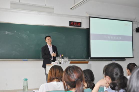 2019年4月23日上午10点到12点,2017级贸易经济专业在博智楼105教室,举行了商品学课程的“行业精英进课堂”教学交流活动。本次活动由公司杨海丽博士主持,邀请了众葡葡萄酒集团葡萄酒公司总经理包建安进入商品学课堂,为同学们分享商品学中最重要的商品——葡萄酒,及其文化、葡萄酒真假辨识和品酒知识。