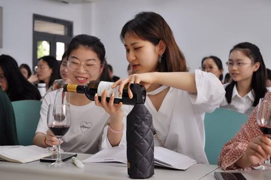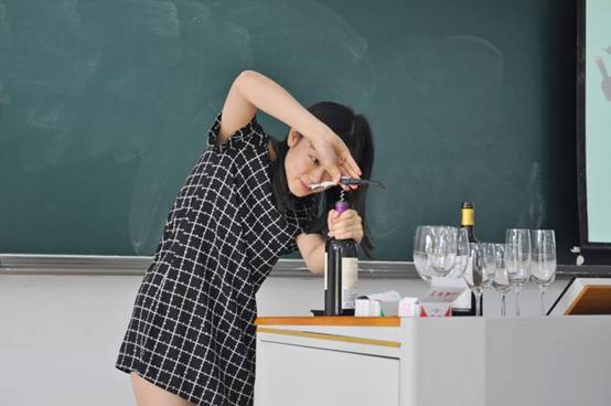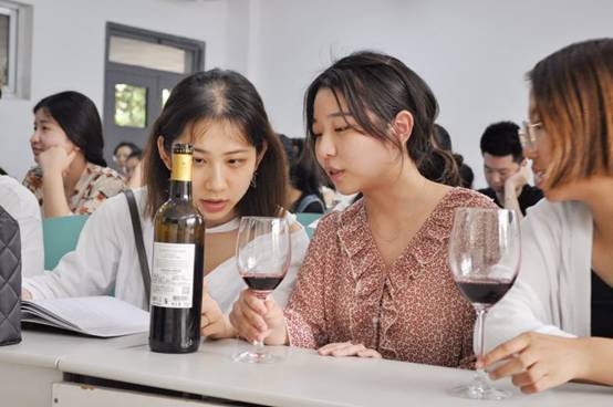 包建安总经理首先为同学们介绍了葡萄酒的种类、区分不同种类葡萄酒的方法、葡萄酒质量的鉴别、葡萄酒文化、以及品酒,每个部分均有案例、图片和小视频,课堂上同学们热情高涨,参与度高,包总经历为同学们带来了两瓶葡萄酒和功能各异的酒杯,让同学们来现场演示如何开酒、如何倒酒、倒酒的技巧和倒酒的量如何控制,然后就行品酒,由10位同学参与现场品酒,基本掌握了品酒的方法和技巧,课程从上午10点到12点结束,同学们表示这是一节收获颇丰的课,收获满满,学到了课本上学不到的有用的知识。课下同学们积极与包总进行交流葡萄酒的文化与鉴别。