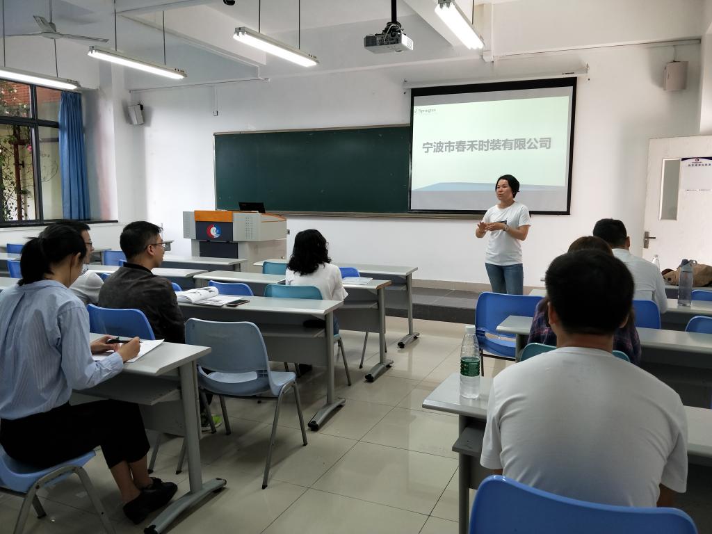 春禾服饰有限公司是公司国际经济与贸易专业优秀员工陆大伟创办的服装贸易公司,公司总部位于宁波,是一家主营高档时装的国际化企业,在美国洛杉矶、纽约分别设有销售公司、在江苏、浙江两省设有5个生产企业。该公司对公司国际经济与贸易、贸易经济、人力资源管理、工商管理等专业有岗位需求。在招聘会上,春禾公司人力资源部招聘人员放映了公司宣传片,展示了公司企业管理、产品定位、未来发展等信息,让同学们对该公司有基本的了解。随后春禾公司工作人员介绍了公司的规章制度、组织结构、工作理念、招聘岗位以及员工成长平台,并进行现场答疑。经过双方相互交流,达成初步意向。