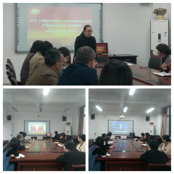 此次主题教育通过支部书记郝颖老师领学以及观看视频的方式集中学习了《中国共产党第十九届中央委员会第四次全体会议公报》有关精神。支部书记郝颖老师对全会内容进行了详细解读,全会通过了1份重要文件,作出1个重要判断,给出1项重要结论,强调13个方面的“显著优势”,提出1个“总体目标”,明确13个“坚持和完善”,公布2项人事信息。