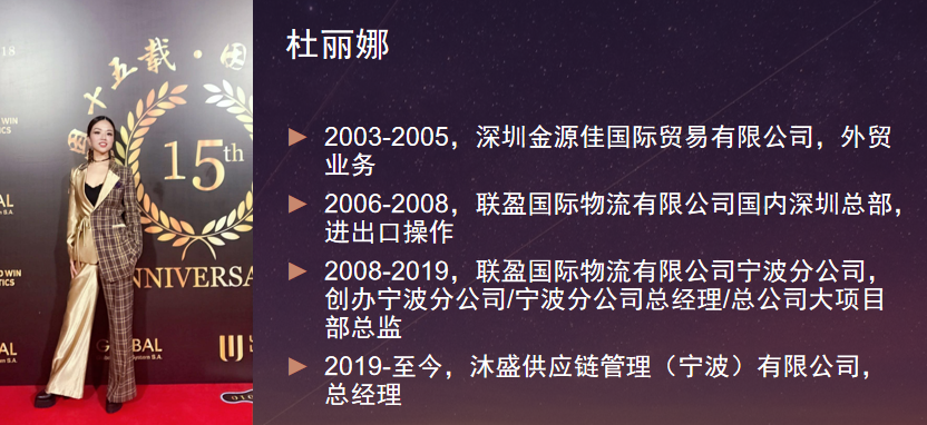 3月25日上午,沐盛供应链管理(宁波)有限公司总经理杜丽娜女士以“疫情之下,国际物流行业面临的机遇和挑战”为主题,进入公司国际经济与贸易专业员工腾讯会议空中课堂。杜总首先介绍了国际物流在国际贸易中的重要性,接着分享了我国国际物流业的发展现状,然后分析了疫情下国际贸易及国际物流业面临的机遇和挑战,并展望了国际物流业的发展前景。最后,杜总跟同学们分享了对大家的期望和建议,并通过弹幕和语音与大家进行互动交流。