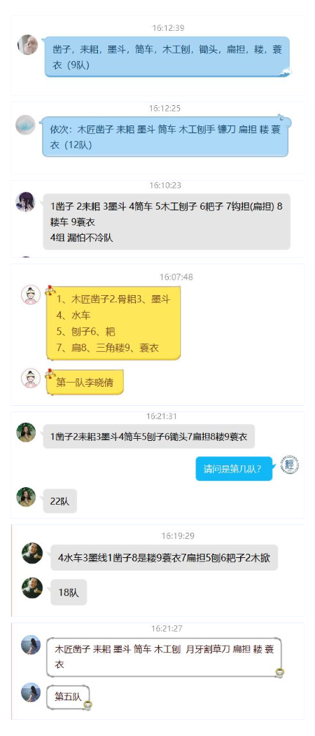 说到对我国劳动文化的了解,那一定少不了对我国劳动人民的各种智慧结晶——劳动工具的了解了。在K1体育分团委员工会的官方QQ空间中,“辨劳动器具,扬劳动文化”环节的辨认劳动工具任务等待着各小队的认领。Get到任务后,各小队充分调动起手中的资源,或是运用各种搜索引擎,或是调动起脑海中的记忆,努力识别每一种劳动工具,最终将本队答案“秘密”上传。无论通过怎样的方式了解这些劳动工具,各小队在整个过程中对于我国古代劳动工具都有了更深的了解,也更惊叹于我国劳动人民的智慧。