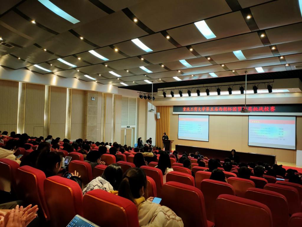 此次比赛以“中国(重庆)跨国采购模拟洽谈会”形式举行,邀请了重庆克维斯机械制造有限公司进出口公司叶康总经理、重庆外经贸进口公司业务经理王丽君女士、重庆西朗进出口贸易有限公司刘思麟女士、王婷婷女士、杨茜女士、重庆科技公司国贸系主任王唯薇副教授、四川外国语大学南方翻译公司国贸系主任甄静副教授、四川外国语大学国贸系主任许劲副教授、重庆交通大学徐冰副教、西南政法大学国贸系主任林永强副教以及公司王疏影、唐丽淼、张冰、汪洁、林新竹老师担任评委。参赛队伍经历了知识赛环节和参展计划书(中文)、产品发布会(全英文)、展位设计及海报制作介绍(中文)以及商务磋商谈判(全英文)等实践赛环节,充分展示了公司经管学子扎实的英语功底、良好的团队合作、独立进取的创新精神。