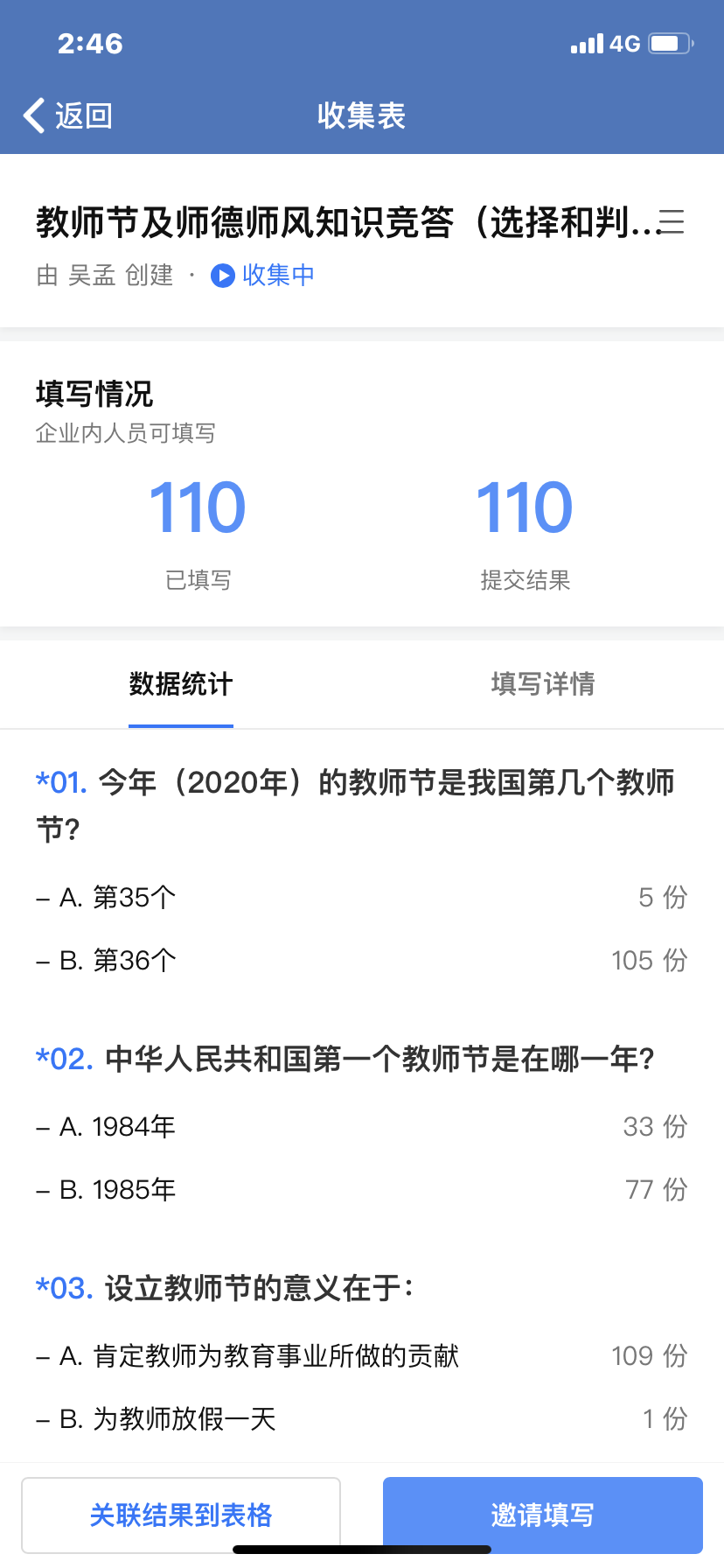 在第36个教师节来临之际,为营造节日氛围,增强广大教师的荣誉感、责任感和使命感,铭记师德师风在公司产品中的重要性,激发教师们更好地教书育人,K1体育工会精心策划组织了全院教职工参与的“教师节及师德师风知识竞答活动”。为解决疫情期间尽量不大规模聚集的问题,本次知识竞答活动采取了线上答题的方式,知识竞答题包含了有关教师节的历史、教师节的意义、教师法对教师使命的规定、教师职业的本质及内在要求、习近平总书记关于师德师风的重要讲话精神,等等。通过教师节和师德师风知识的答题,老师们重温和再次感受了党和国家以及全社会给予教师的崇高荣誉和光荣使命,纷纷表示要珍惜这个荣誉,为人师表,教师育人,为国家为社会培养德智体美全面发展的合格人才。
