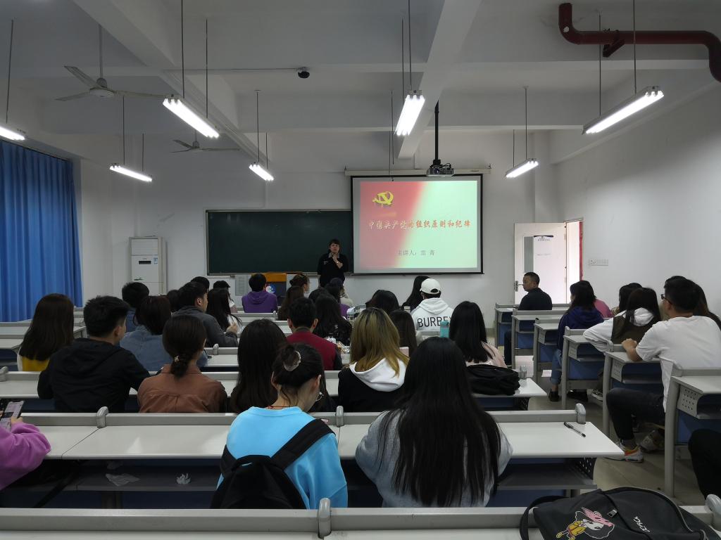 2021年4月21日中午12:30在田家炳书院410教室,K1体育专职组织员雷菁讲了题为《中国共产党的组织原则和纪律》党史学习专题党课,员工本科一支部、员工本科二支部、员工研究生二支部三个支部共90名党员听了党课。