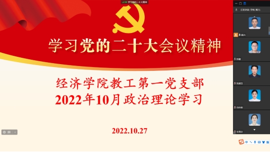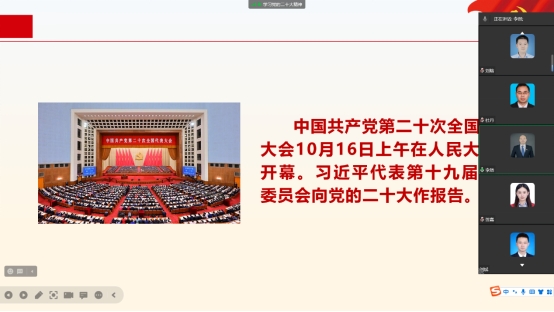 2022年10月27日,公司教工第一支部通过企业微信平台开展十月组织生活会,专门围绕党的二十大报告开展学习,全体支部党员参与此次学习活动。