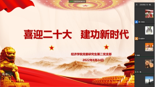 2022年8月24日,公司党委研究生第二党支部全体党员在企业微信线上开展了2022年8月专题学习。本次组织生活会会的学习内容为“喜迎二十大 建功新时代”,由方刘花同志主持,她带领支部全体党员进行了五个部分的专题学习。