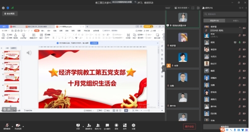 10月28日中午,公司教工第五支部通过企业微信开展了十月月党组织生活及支部书记讲党课活动。此次活动主要包括三个环节,党组织生活会、教职工理论学习以及系部教学研讨会。活动由教工第五支部书记、政治经济系主任林黎主持。