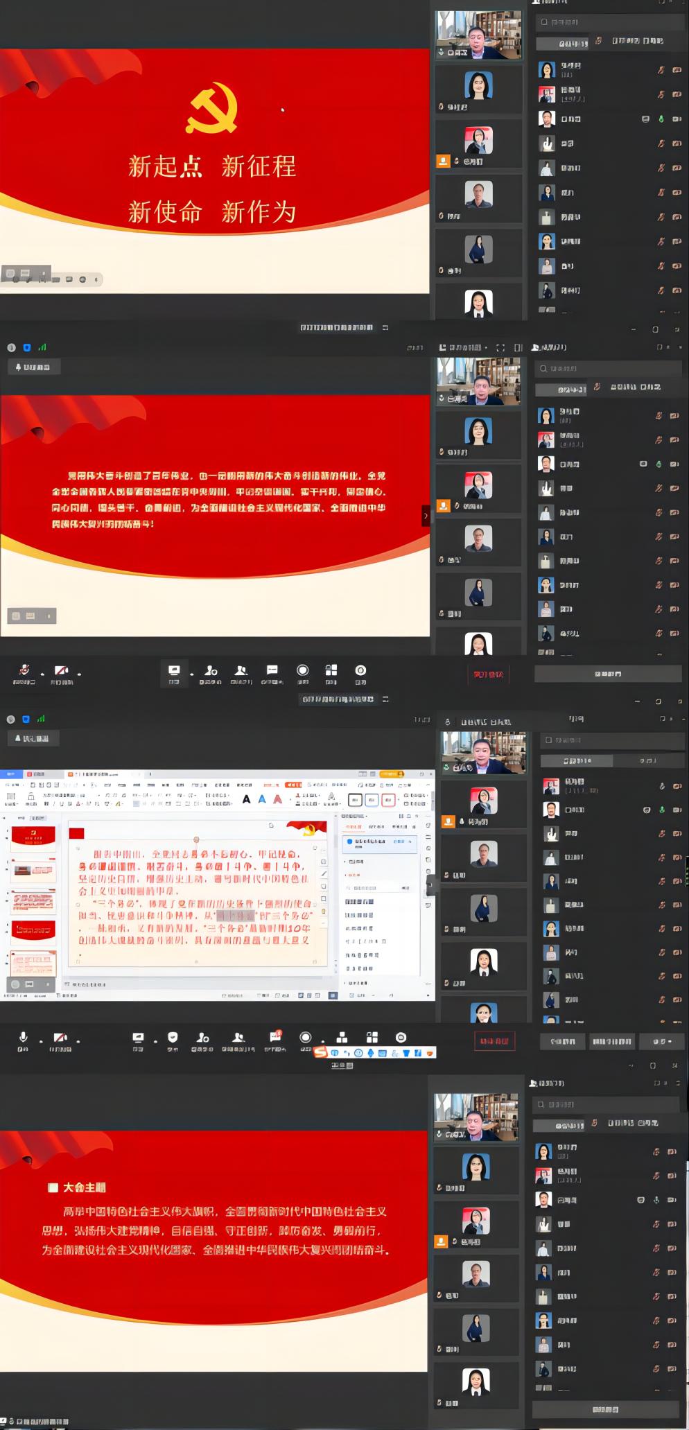 第一阶段,公司党委委员白海龙副书记为全体支部成员作了主题是“新起点 新征程 新使命 新作为”的二十大专题学习党课。白书记分别从“过去五年的工作和新时代十年的伟大变革”、“新时代新征程中国共产党的使命任务”、“推进国家安全体系和能力现代化,推动构建人类命运共同体”等十五个方面,结合公司员工工作实践和当前疫情防控工作,详细全面的给全体支部党员上了一堂生动的党课,党员教师收获很大。