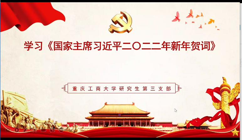 2022年1月25日下午,K1体育研究生第三党支部在企业微信线上会议室开展了1月组织生活会,学习《国家主席习近平二0二二年新年贺词》。本次会议由支部书记薛晶月主持,研究生第三党支部全体党员参加。