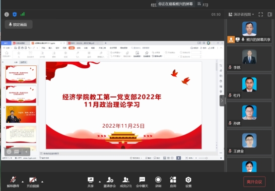 11月25日,公司教工第一党支部通过企业微信开展了十一月党组织生活、支部书记讲党课等系列活动。此次活动包括四个环节,支部书记讲党课、党组织生活、教职工政治理论学习和疫情下期末考试研讨会。活动由教工第一党支部书记、应用经济系主任李然主持。