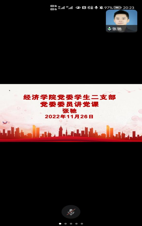 本次活动共有三项议程。活动议程一,由张弛委员作“为全面推进中华民族伟大复兴而团结奋斗”为主题的党的二十大精神宣讲,他从“一个中心任务、两个‘行’、两步走战略、三个务必、五个必由之路、六个必须坚持”六个方面进行阐释,鼓励党员同学们认真学习宣传贯彻党的二十大精神,互帮互助,共克时艰;支部书记喻智成老师以二十大金句为主题进行宣讲,希望同学们深入学习二十大精神,在自己的学习生活中,起到党员同学的先锋模范作用。活动议程二,由19级的三位党小组代表分别领学11月的组织生活学习资料。张文杰同学针对《习近平在中国共产党第二十次全国代表大会闭幕会上的重要讲话精神》展开领学,帮助同学们深刻理解二十大内容,坚定历史自信,增强历史主动,践行全心全意为人民服务的根本宗旨;白菲菲同学针对《在主动与自信中继续推进马克思主义中国化时代化》展开领学,通过讲解二十大报告的“过去五年的工作和新时代十年的伟大变革”、“开辟马克思主义中国话时代化新境界”等四个部分,鼓舞同学们怀抱梦想又脚踏实地,树立担当精神;彭洪梽同学针对《中国共产党章程的修改》展开领学,讲述修改党章是深入学习贯彻党的创新理论与推进党和国家事业发展的需要,激励同学们牢记党章,严格约束自己。活动议程三,由20级的三位党小组代表交流学习心得。同学们都提到要深入学习贯彻二十大精神,认真学习,遵守党章,在学习中不断坚定理想信念,激发不断把二十大精神转化为践行使命担当的前进动力,以实际行动扛起全面建设社会主义现代化强国、实现第二个百年奋斗目标、实现中华民族伟大复兴的时代伟业。