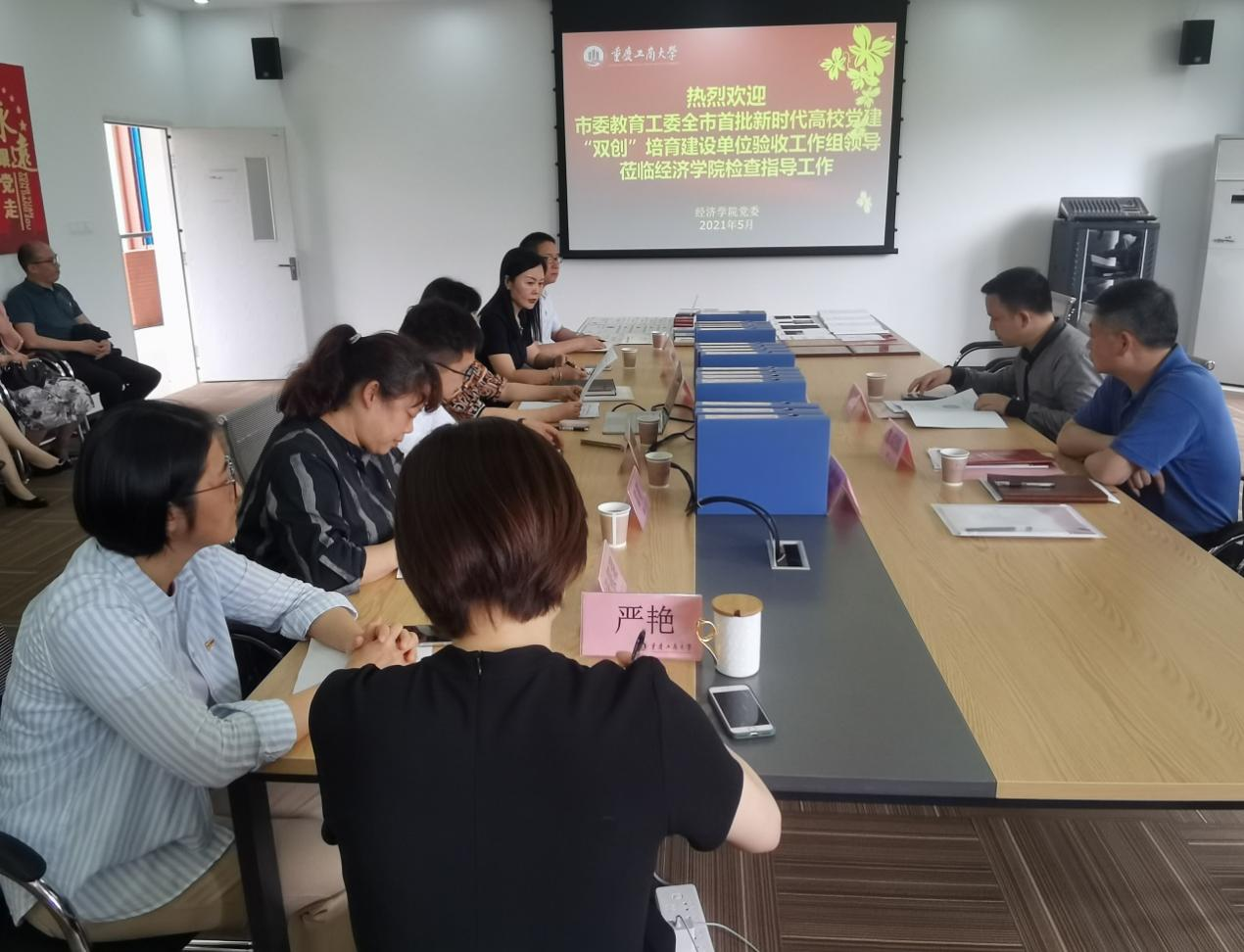 2021年5月20日下午,重庆市委教育工委全市首批新时代高公司党建“双创”培育建设单位验收工作组周正发同志在公司机关党委书记、组织部副部长龚顺清的陪同下,到公司初步验收并指导公司党建“双创”培育建设工作,公司领导班子、12个支部书记和综合办、学团办、教务办负责人参会。