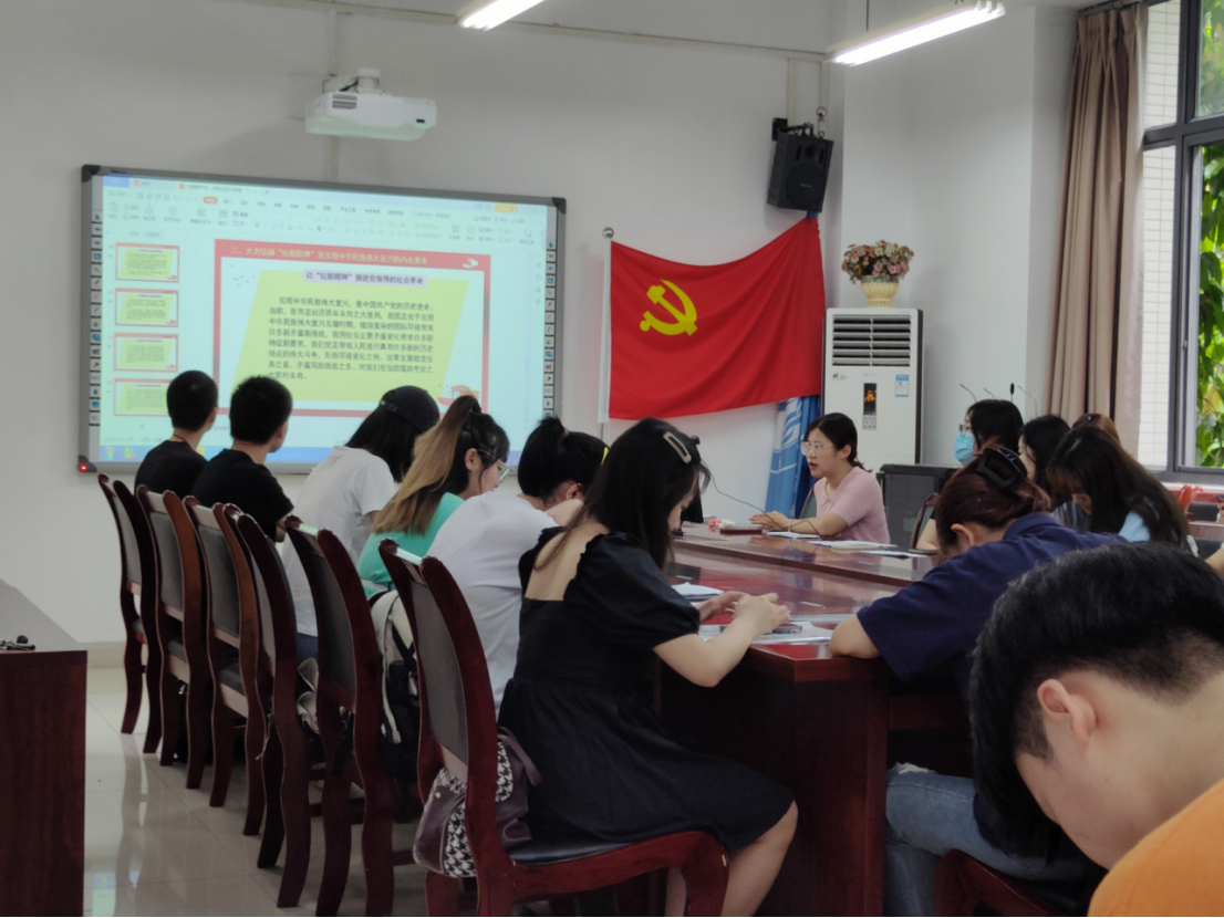 党课上,支部书记陈璐主要从“红船精神”昭示着中国共产党人的初心、弘扬“红船精神”是实现中华民族伟大复兴的内在要求、如何让“红船精神”绽放新的时代光芒这三个方面进行了详细地讲述,给党员们理清了红船精神的精神脉络。习近平总书记在2005年6月首次公开提出“红船精神”的概念,认为“开天辟地、敢为人先的首创精神,坚定理想、百折不挠的奋斗精神,立党为公、忠诚为民的奉献精神,是中国革命精神之源,也是‘红船精神’的深刻内涵”。陈璐书记也讲述到:“红船精神”与长征精神、延安精神、焦裕禄精神、抗疫精神等一脉相承,而“红船精神”是中国革命精神之源,作为新时代党员更要传承“红船精神”,以永无止境的追求、善谋新篇的担当更加自觉地践行党的初心和使命。