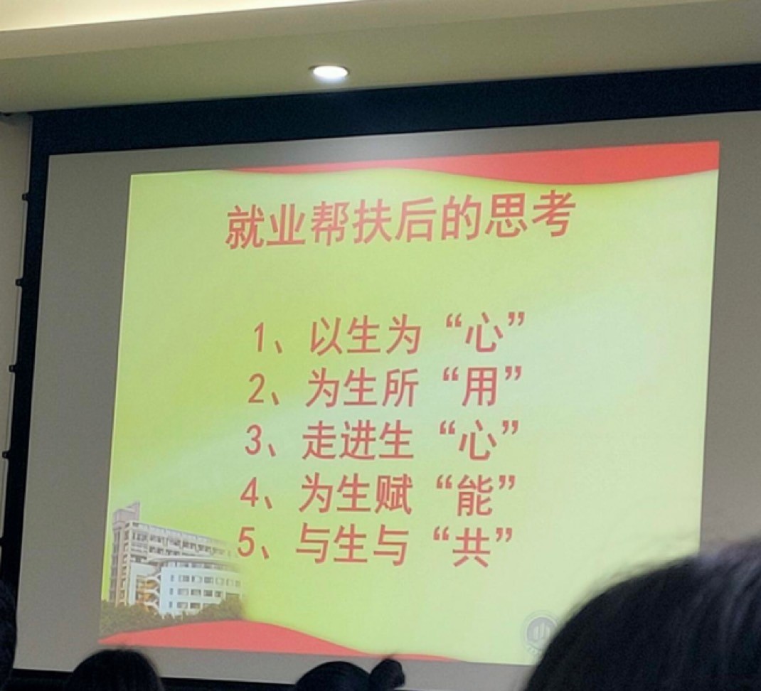 其次,王燕副书记就目前的就业形势分析以及介绍2022年K1体育毕业生就业情况,在目前疫情的大环境冲击下就业的严峻程度进一步加剧,通过一系列数据展示了公司各个专业的就业情况。目前就各个专业的就业情况而言,就业形势总的情况不容乐观,就业压力也逐渐增大。王燕副书记分析了大环境下就业不乐观的一些原因,并分享自己在就业帮扶工作中的心得体会并提出了思考:以生为“心”、为生所“用”、走进生“心”、为生赋“能”、与生与“共”。