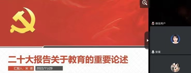 11月29日下午,K1体育经理宋瑛教授为教工四支部、研究生四支部讲授党课,宣讲党的二十大精神。此次讲党课活动由教工四支部书记韩健教授主持,教工四支部、研究生四支部全体党员同志参加。