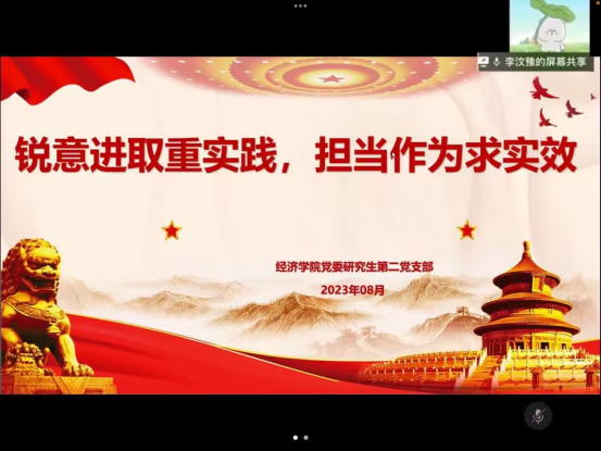 2023年8月18日上午,公司党委研究生第二党支部在企业微信以线上的形式开展2023年8月组织生活暨主题党日活动,活动由二支部党员李汶豫同志主持,支部书记高娟同志和二支部全体党员参加本次学习活动。