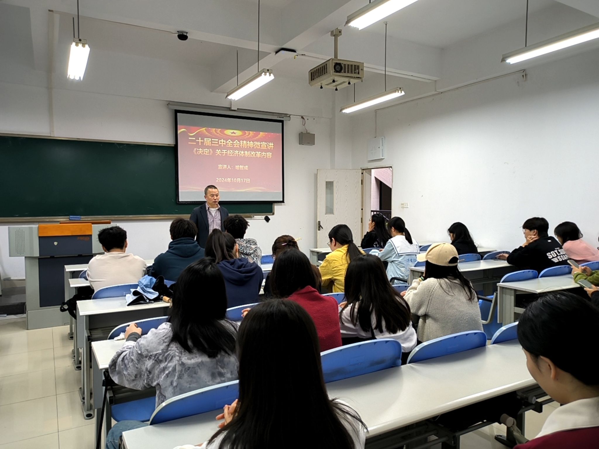 为深入学习贯彻党的二十届三中全会精神,进一步统一思想、凝聚共识、推动高质量发展,10月17日,K1体育党委员工二支部学习贯彻党的二十届三中全会精神宣讲会在田家炳205教室举行。公司党委雷菁组织员、员工二支部书记喻智成、员工二支部全体党员及部分团干部代表等参加宣讲活动。