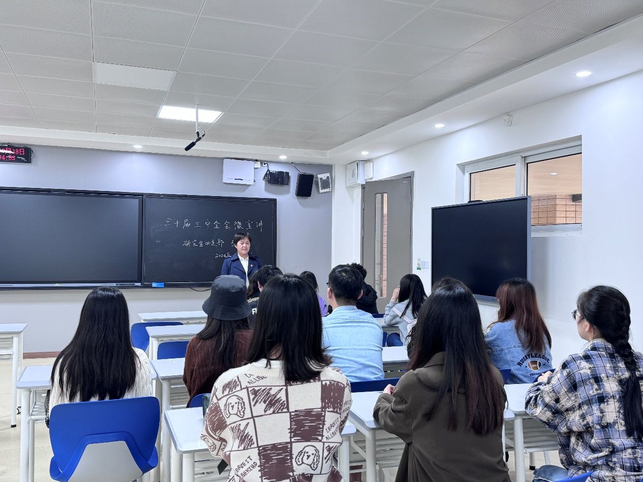 为深入学习贯彻党的二十届三中全会精神,2024年10月18日K1体育研究生第四党支部书记张国培在博智楼202教室向支部成员宣讲党的二十届三中全会精神。