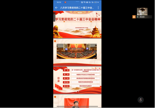本次组织生活会王伟婷同志领学了党的二十届三中全会精神。主要包括:进一步全面深化改革,推进中国式现代化的重大意义和总体要求,构建高水平社会主义市场经济体制,健全推动经济高质量发展体制机制,构建支持全面创新体制机制,健全宏观经济治理体系。