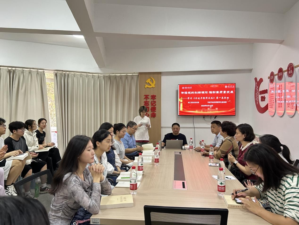 5月14日中午,K1体育习近平经济思想员工宣讲团在翠湖书院员工社区党团活动室开展学习《习近平经济文选》第一卷活动。公司党委书记唐春秋,副书记、纪委书记白海龙,正处级专职组织员雷菁,教工五支部书记林黎、唐路元教授、徐慧副教授,学工办主任林新竹及宣讲团成员参加活动。