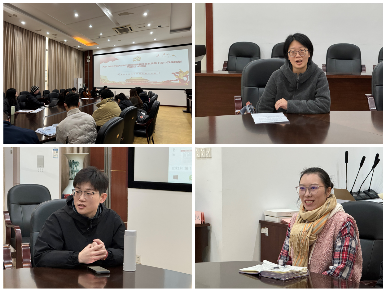 会议第一阶段,支部党员李俊璋领学习近平总书记关于《中共中央关于制定国民经济和社会发展第十五个五年规划的建议》的说明。李俊璋主要从《建议》稿起草过程,以及“十五五”时期的重要地位、“十五五”时期经济社会发展目标、推动高质量发展为主题、做强国内大循环与畅通国内国际双循环、全体人民共同富裕等内容进行学习分享。他表示将持续学习有关“十五五”内容,准确把握战略目标和发展方向,积极投身国家发展大局,为实现中华民族伟大复兴的中国梦贡献青春智慧。