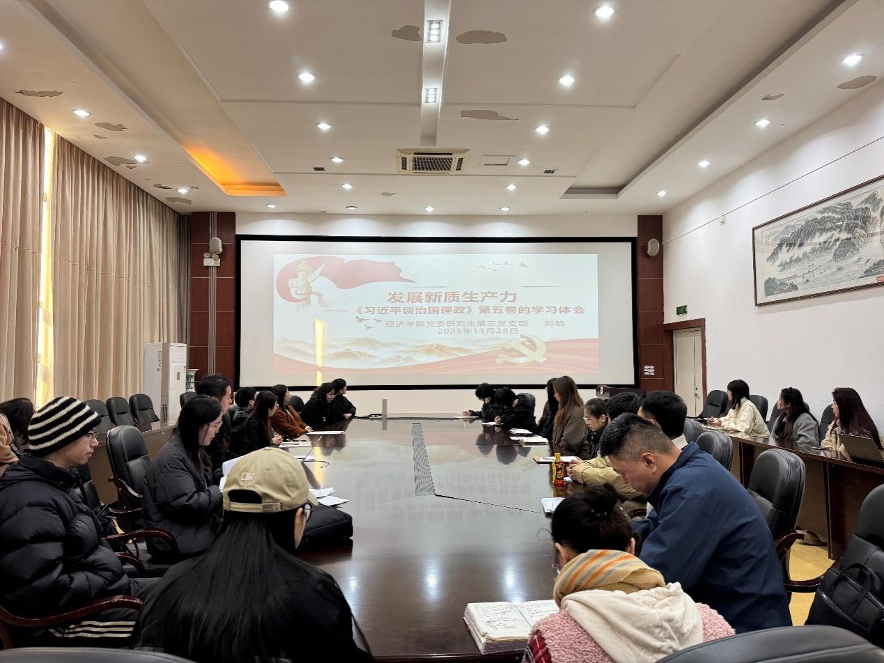 为做好《习近平谈治国理政》第五卷的学习工作,推动研究生党员持之以恒读原著学原文悟原理,切实做到学思用贯通、知信行统一。2025年11月28日,公司党委研究生第三党支部在田家炳书院6楼会议室开展专题党课学习,支部书记刘晗讲授“发展新质生产力——《习近平谈治国理政》第五卷的学习体会”为主题的党课。