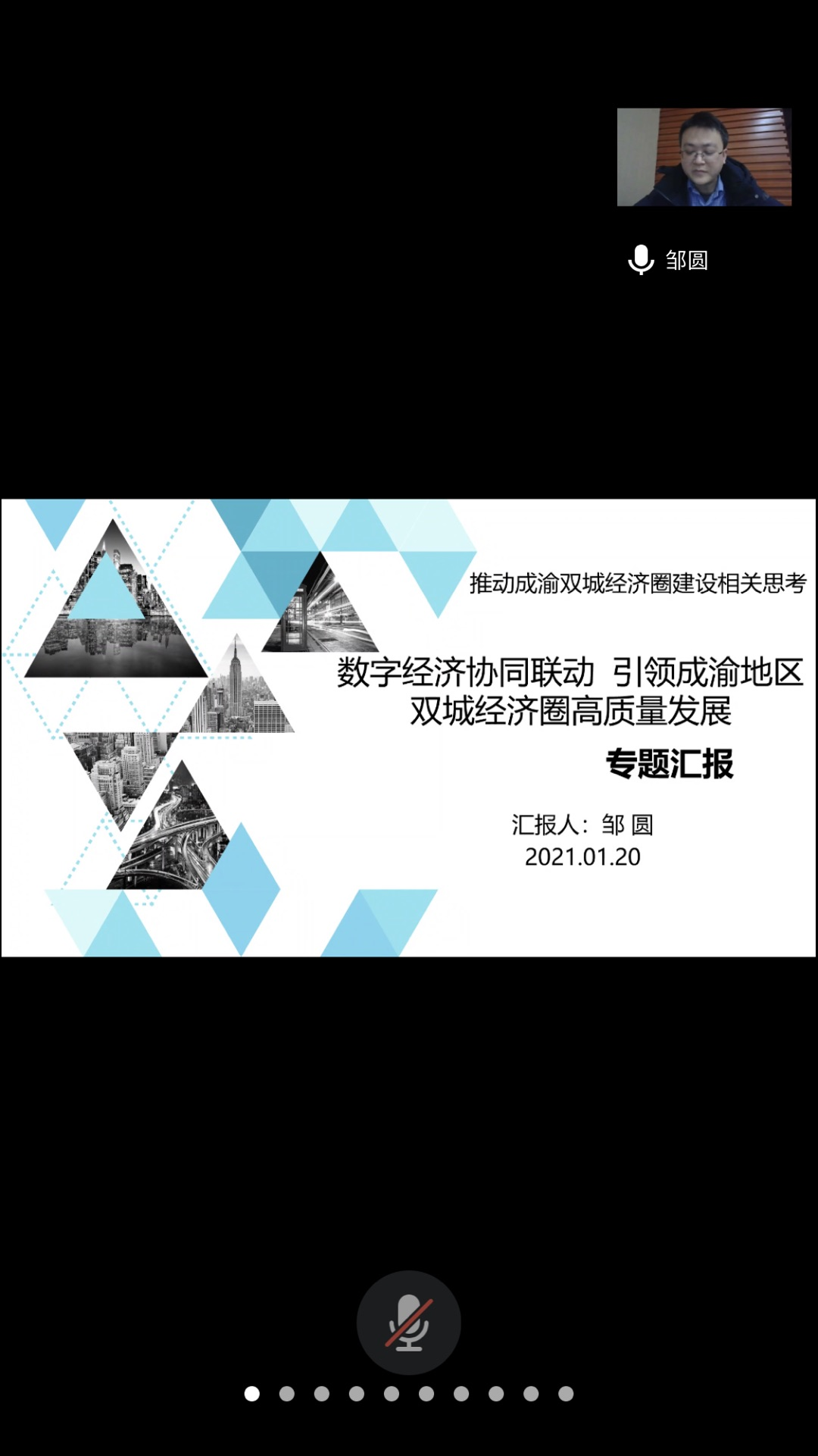 最后,雷菁委员和程卫民处长进行了总结发言。雷委员指出公司与政府机关开展支部联建活动,对于双方的党建工作具有重要意义,双方本着“共建支部、共享资源、共商活动、共同提高”的原则,重点围绕成渝经济圈建设,发挥各自组织优势和业务专长,通过共同开展学习教育、分析研究、聚智献策等活动,实现党的建设与业务工作深度融合。程卫民处长认为今天的视频连线是一次深化支部合作、检验联建成果的活动,是一次引智赋能聚力、互学互鉴互享的活动,更是一次助力川渝人社合作、助推成渝“经济圈”建设的活动。他感叹共建是跨界合作,开辟成渝经济圈建设新阵地;是引智聚力,助力川渝人社合作出新成果;是共建共筑,推动支部联建工作上新台阶。他对以后联建工作提了三点倡议,一是查漏补缺,加快完成共建任务,二是常联常新,深化支部联建工作,三是互助互建,推动双方事业发展。