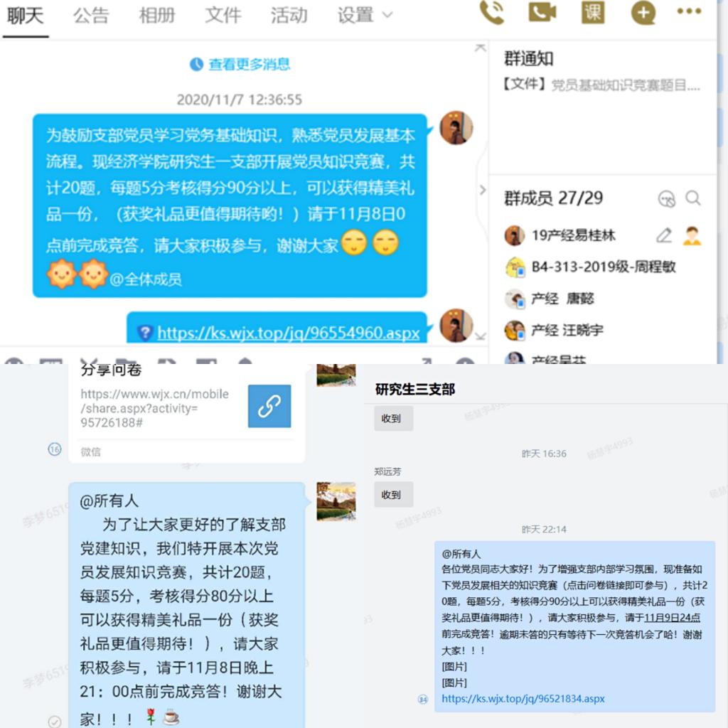2020年11月5日,K1体育研究生一、二、三党支部共同举办了党员发展相关的知识竞赛,采用问卷答题的形式,各支部书记及全体党员参加了此次活动。