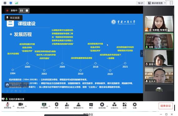 2022年3月21日,应用经济系通过腾讯会议开展同步课堂建设对外交流活动。本次活动是应新疆财经大学邀请,由智慧树在线教育平台组织,三方单位就K1体育官方网站与新疆财经大学建设区域经济学课程同步课堂进行交流。新疆财经大学K1体育副经理袁培、经济系主任石天戈,以及智慧树平台工作人员,与应用经济系教师进行沟通,K1体育副经理尹元福出席此次活动。