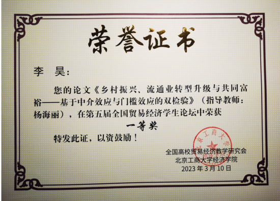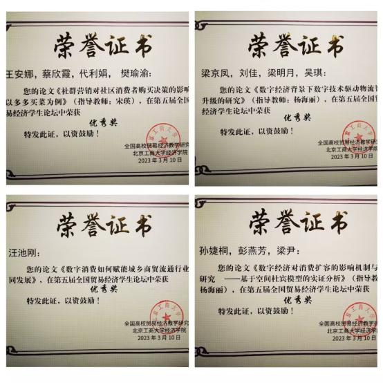 本次论坛吸引了全国三十多所高校参加,最终经专家评审组匿名评审、合议,评选出十九篇优秀作品。公司学子在贸经专业系主任杨海丽老师等多名老师的组织和指导下,共十一篇作品获奖,其中一等奖一项、二等奖一项、三等奖三项、优秀奖六项。此次论坛为贸易经济学领域的员工提供了学术交流的平台,让贸易经济相关员工对专业知识学习和学术论文撰写有了更加深刻的认识,为培养具有创新精神和实践能力的商业领域高级专门人才发挥了积极作用。