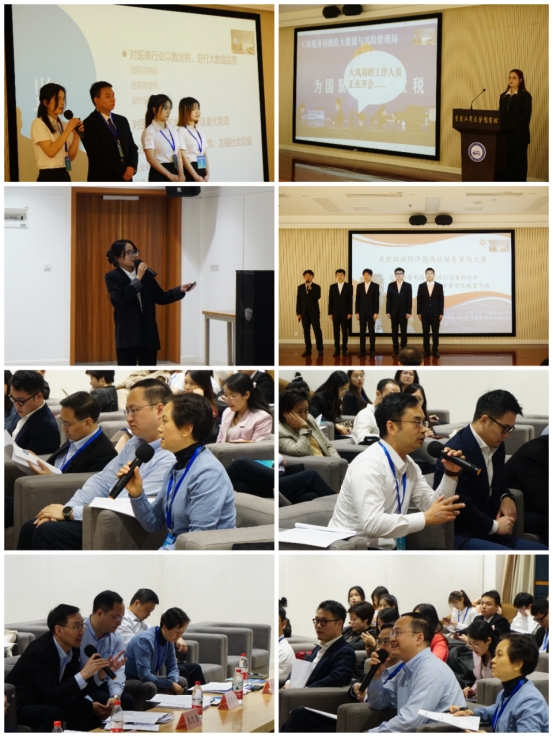 在案例汇报与答辩环节,参赛队伍各有特色、分工明确,有条不紊地开展案例的分析。他们从不同视角用不同方法对相应案例由浅入深地进行了深度剖析,将复杂的税务问题清晰明了地进行展现,引人深思。参赛选手们的案例典型而又不失特色,涉及广泛,包括企业合同拆分、离岸避税架构、虚开增值税发票等税务问题研究。各位专家评委认真聆听,对参赛选手的精彩表现给予充分肯定,并对同学们的案例分析进行专业性的点评,同学们受益良多。