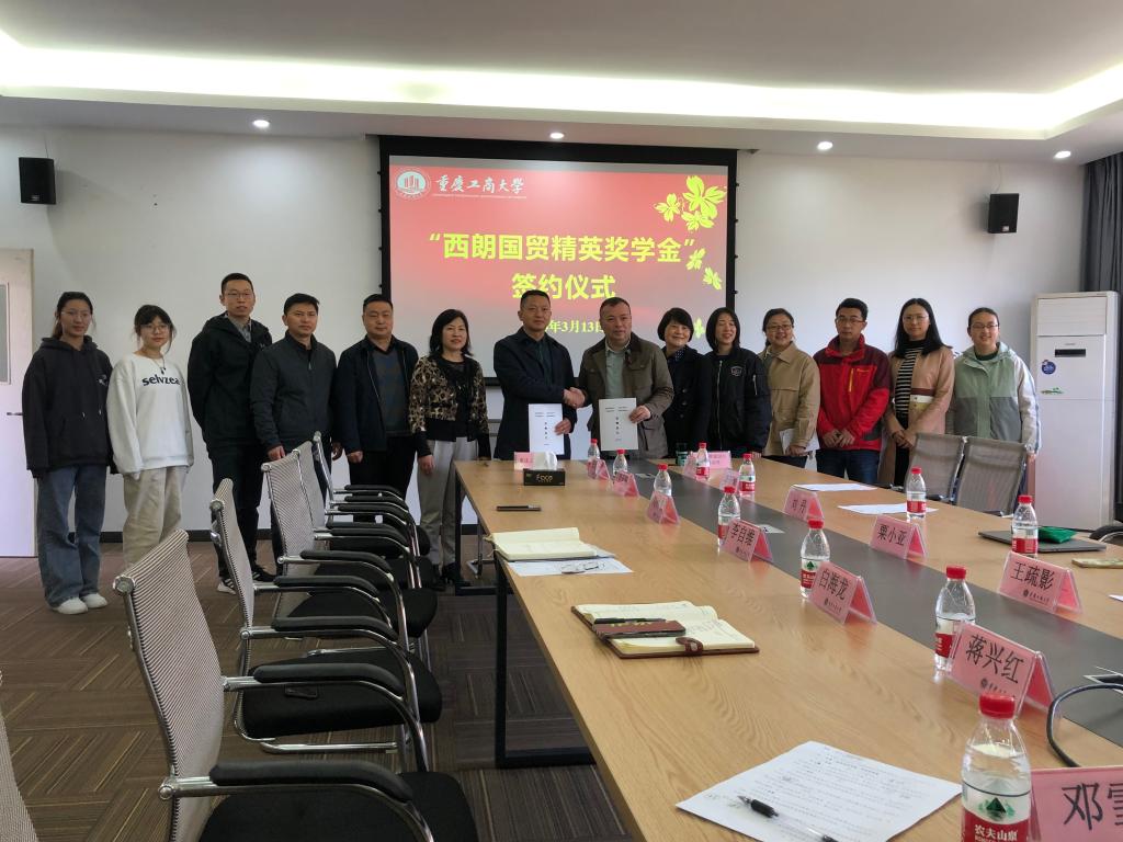 图3 捐赠成立“西朗国贸精英奖学金”助力国贸学子培养